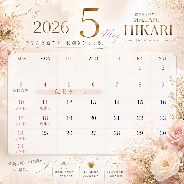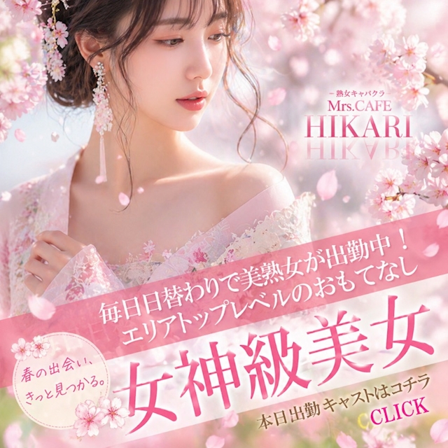 Mrs.CAFE光は魅力的な20代後半から40代のキャストが揃う、年齢層が高い熟女キャバクラです。