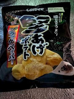 幸せはちみつバターぶりにハマってしまったもの🥺ᩚ 堅あげポテトのプラックペッパー味(´﹃`) 一時期、ご飯配信をしていた時にですね ひたすらお酢と胡椒でお肉焼いて食べてたり してたんですよ(,,>᎑<,,) それくらい胡椒が好きでありんす(๑♡∀♡๑) こんなにひと袋の量が少なくなったのにも関わらず (*ФωФ)フフフフフフフフフ 食べるのに満足してしまって 1/3残すという。。。 どハマりした11月は BIGサイズを買ったけど 当たり前に食べきれないし。。。 後日3回に分けて食べましたところ ふくよかな身体になりましたw 今はお菓子を食べるんじゃなくて さつまいもや じゃがバターを 食べてますΨ( 'ч' ☆)