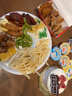 友達にお祝いしてもらうから ご飯いらないって 前に言ってたんだけど 実習で疲れちゃって また次回になってしまったしん💦 なので急遽パーティー グルメに変更❣️🍽️ 3日前に頼まないと いけないってネットに 書いてあったけど 電話したら大丈夫ですよ❣️と 快く引き受けてくれた🙏 時間無かったから 凄く助かる🙌💖 おばあちゃまは お魚と煮付けと ちょっと揚げ物つまんでた✨ 皆んなでお祝い出来て 良かったしん🎉🎂💖 美容院で巻き巻きしてもらったし 今日も頑張って 行ってきまぁす❣️