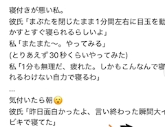 この間、あおいさんと 寝れないときどうするかの 話してたよ! 割と私は、いつでも すぐ寝ちゃう方だけど 寝れなくなると あほほど寝れないの🫨 今、こんなの流れてきて タイムリーってなったやん😊↓ 寝れないとき 試してみよかなー ところで 充電4% 大丈夫そ?