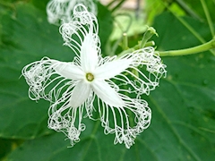 本日のお花はカラスウリ 花言葉 は 『誠実』 『よき便り』 「誠実」は 夜になると開花する 不思議な特徴があり しっかりと夜を待つ様子に ちなむといわれています 「よき便り」は 種子の形が結び文 (結び状) に 似ていることが 由来とされています 花期は7~8月です お花は見た事ないけど 実はみたことある! ☆.*゚•*¨*•.¸♡o。+ ☆.*゚•*¨*•.¸♡o。 あきな