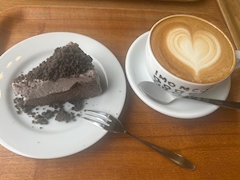 この間 美味しいケーキ 教えて頂いて 困ってたことも 解決して頂いた✨ 黒いチーズケーキ 珍しいよね! ハートの ラテアートも可愛い🩷