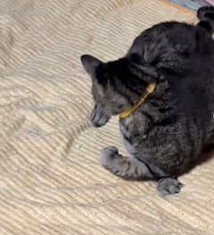 猫のガッツポーズだって! 可愛い🩷 そんなん どこで覚えてくるんかなぁ やったぜ とか思ってるんかなぁ