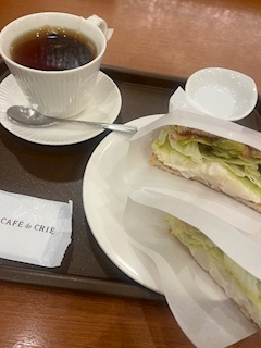 エビアボガドサンド🦐🥑✨ 安定にエビプリプリで アボガドとポテサラと ワサビが効いたソースで 美味しく頂きました🙏✨ ダージリンティーも 香りが良くて 身体温まりました🤗 そしてレシート🧾2枚で 貰えたよん🙌😊 ボブが良かったけど しょうがない❣️ 小さめだけど しっかり厚みもあって 可愛いかったぁ😍 今日はポニテで 頑張りまぁす💖