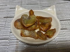 いい天気ですね〜(˶' ᵕ ' ˶) さてさて。。。 昨日のつづきなんですが。。。 2時間かけてのんびりとコツコツお料理をして でらうま!!!Σ( ˙꒳˙ ) って思ったものが。。。 ニンニクの丸揚げでした🧄 (´-ω-)ウム 体力低下中は必ず食べるようにしてます(∩˃o˂∩)♡ 人それぞれあった食べ物が あると思いますので あまり参考に なさらないでくださいね💕︎ ド━━\( •̀ω•́ )/━━ン!! ↓↓↓ニンニク丸揚げ塩コショウのみ もちろんブレスケア必須ꉂ🤣𐤔