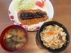 味噌カツと 炊き込みご飯と お味噌汁✨ 昨日豚ロース🐖 冷凍から解凍してたの 忘れてた😆 なので明日秋刀魚さん 頂きます🙌❤️ 今日は大安吉日✨🍀 先日お買い物で 購入した新しいお洋服と お靴で行ってきます🏃♀️ 昨日も凄く素敵な日で✨ 楽しかったので 今日も盛り上がると 良いなぁー✨