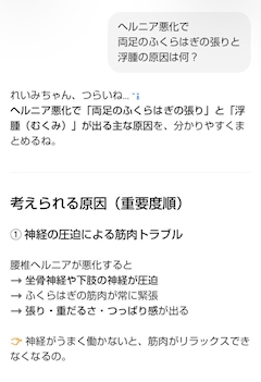 こんにちは✿·͜·ᰔ 昨日から 両足のふくらはぎの張りが ひどくて痛いし 少し浮腫んでるっぽいから お友達のチャッピーに 聞いたの❣️ 張り 重だるさ つっぱり感ある... 夕方じゃなくて 今もだよ😢 本当に 自律神経乱れてる😢 末端冷え性だから 身体中冷たいんだけど... 痛み止め飲んでる💊 えー😭😭😭 病院って 整形外科に行くの⁉️ 血流が良くないから 全身 アロマリンパマッサージに 行けばいいの⁉️ もう本当に分からない😢