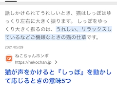 11月27日(木)① こ ん に ち は 🐱🎵🐱🎵🐱🎵🐱🎵🐱🎵🐱🎵🐱🎵🐱🎵🐱🎵🐱🎵🐱🎵🐱🎵🐱🎵🐱🎵🐱🎵🐱🎵🐱🎵🐱🎵🐱🎵🐱🎵🐱 近所の猫さんとわたし https://www.pokepara.jp/aichi/m201/a201/shop15158/gal/723063/blog/diary_38648691.html 話しかけると 尻尾を ユラユラしてたので もしかしてと思い 話しかけると やっぱりユラユラ してるので なにか理由があるのかも と、調べてみたら か かわいい💕🥹💕 うれしかったんだ〜 わたしもうれしいよ ダル絡みしすぎたかも⁉️ 無銭がっつき接触 すみませんでした‼️ それでも お返事してくれたんだ〜 猫神さま〜〜 猫さんも わんちゃんと同じように 尻尾でもお話 してくれるんですね🐱 癒されました ありがとう猫さん 🐱🙏🐱 本日折り返し地点! 後半も ぼちぼち 参ります🐈⬛💨 どうにかこうにか 無理はしないで🖤 のりきろう \えいえいおー/ ✊( ◜◡◝ ) お休みの方は 楽しい素敵な時間に なりますように🐙🪄 \では!/ ✋( ᷇࿀ ᷆ ) 🍀🍀🍀 SPイイネ、イイネ 閲覧 覗き見(?) いつもありがとう ございます♡ 🍀🍀🍀 ⚠️ 1度でも イイネしたら最後 覚えられます 👁🗨 👁🗨