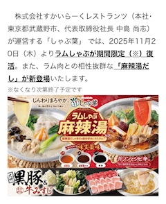 こんばんは🌛 もう少しで仕事終わるから ヘルニアで腰が痛いし 少しお疲れ気味だから 今日は 家でゆっくり休みたいな🥺 ♡ ••┈┈┈┈┈┈┈┈•• ♡ 激辛大好きなんだけど まだお店に 麻辣湯は 食べに行った事がないし 毎日寒いから これは食べに行きたいな🍲 しゃぶ葉 ラムしゃぶ 麻辣湯 めちゃくちゃ美味しそう🤤 しゃぶしゃぶ食べ放題って ほとんど行かないし しゃぶ葉行ったことない💦 私 あんまり食べられないし 食より酒だから↑🍺中身はおっさん女子🍺笑 食べ放題は損しちゃう😣 しゃぶしゃぶ食べ放題なら 何回か温野菜は 行ったことがあるけど 温野菜は美味しかったな🩷 毎日寒いし ラムしゃぶ麻辣湯が 食べたいから しゃぶ葉に行きたいな🍲 ♡ ••┈┈┈┈┈┈┈┈•• ♡ 本日 Mrs.CAFE 光は 定休日です✨ 明日から営業しますので よろしくお願い致します🙇♀️ 今日は 家でゆっくり休もう 🩷🩷🩷