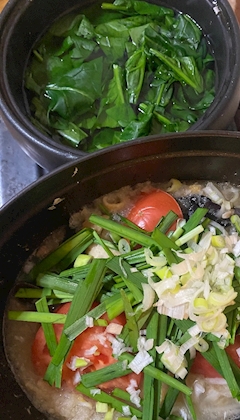 おはようございます❀.(*´ω`*)❀. この前野菜を大量に買ったので レッツてきとう鍋 🎶( ◜ω◝و(و🎶 とにかく野菜を 野菜の旨みを 野菜から摂れる水分を 補給したくて 🍅・⌒ ヾ(*´ー`) ポイ ニラ(ノ・ω・)ノ⌒°ポイッ ( ^🐽^ )・⌒ ヾ(*´ー`) 白菜トロトロになるまで 煮る。。。 出汁のみ(´﹃`) 梅干し2粒(ノ・ω・)ノ⌒°ポイッ すりおろし大根(^-^)⊃⌒Ο もーう!サイッコーに😍 身体がおいしい♥️(*´~`*)ŧ‹”ŧ‹”ŧ‹”ŧ‹” っていってて2杯もオカワリしてしまいました(ノ≧ڡ≦)☆ この味付けマジでオススメ🫶 てきとう鍋と言いつつ デトックス鍋とも言う(⑉• •⑉)❤︎ 上はほうれん草のおひたし用🥬 鉄分取らないとね✨