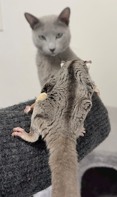 もふもふ さっちゃんの 大好きな子です⭐️ モモンガのもっちゃんと ロシアンブルーのハクちゃん 2匹仲良しです⭐️ もっちゃんが今年6歳になります🎉大きくなりました🥺 ハクちゃんが3歳です😌 1人で育ててきましたよ🤗 大きくなりましたね〜🥺💕